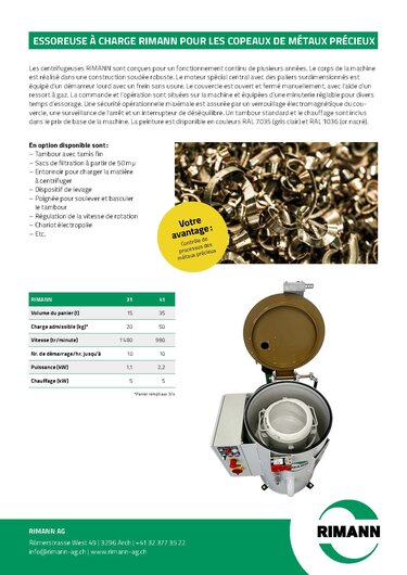 Essoreuse par charge pour métaux précieux RIMANN