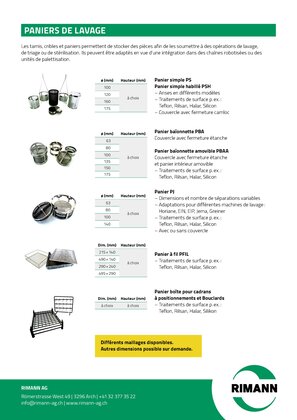 RIMANN développe et produit des paniers de lavage spécifiques aux pièces dans tous les modèles en termes d’épaisseur de fil, de matériau, de largeur de maille et de traitement de surface. Nous utilisons l’inox 1.4301 pour les treillis métalliques. Grâce aux nombreuses possibilités de revêtement telles que Halar, Téflon, Rilsan, silicone et électropolissage, nos solutions couvrent de nombreuses applications dans les secteurs les plus variés.